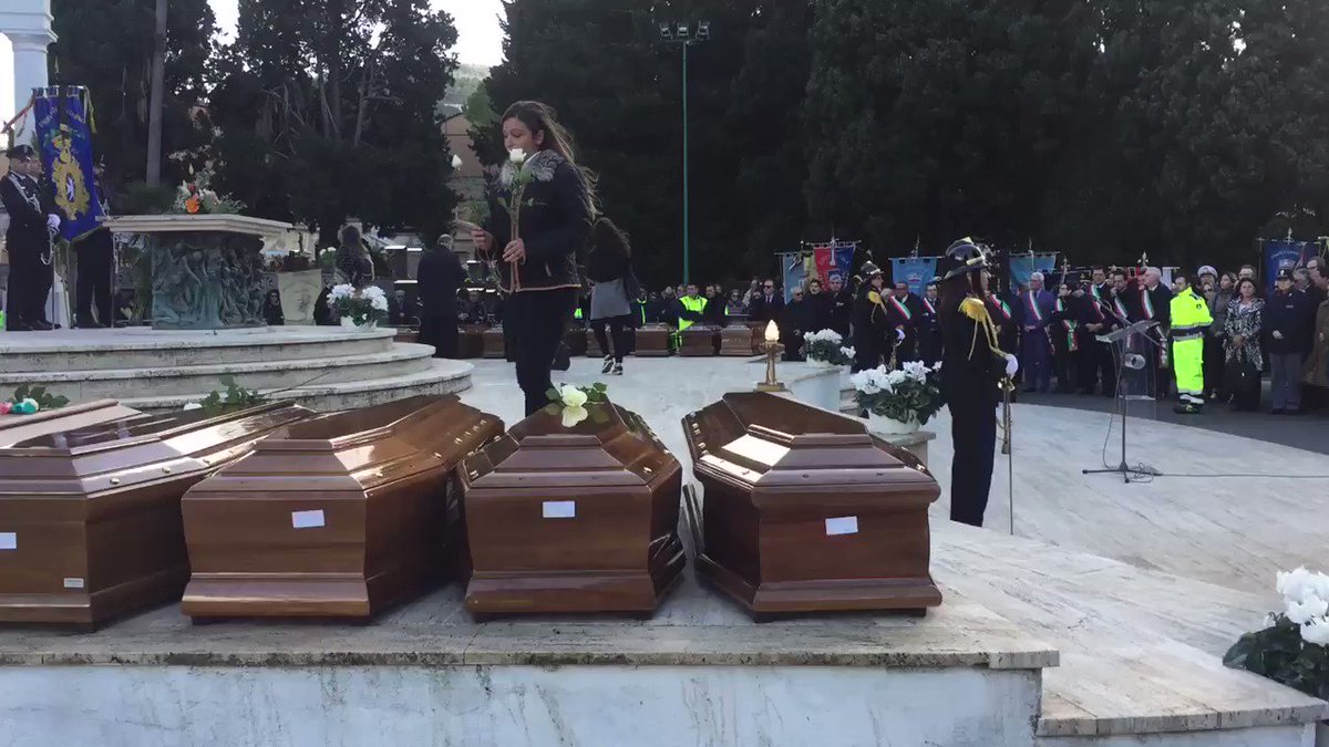 A white rose was placed on each of the coffins as a day of mourning was declared in Salerno to honour their memory.